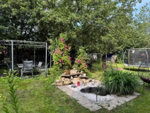 Ухоженный участок 12 соток с хвойными деревьями . Асфальтированный подъезд к дому.