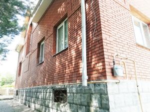--- Материал стен дома бревно-сруб, обложен кирпичом.