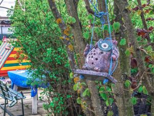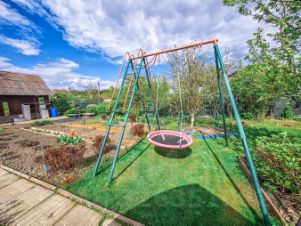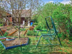 - детская зона с песочницей, качелями и батутом,