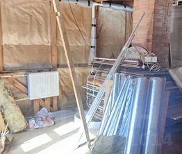 Камин и твердотопливный котел уже работают. Радиаторы разведены по обоим этажам. Для лета это идеальная база: быстро прогреть дом после прохладной ночи или дождливого дня.