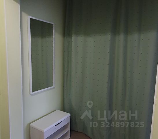 Спальня обустроена мебелью: импортный диван с выдвижным двухспальным местом и подсветкой, импортный шкаф, тумбочка. Имеется выход на балкон.